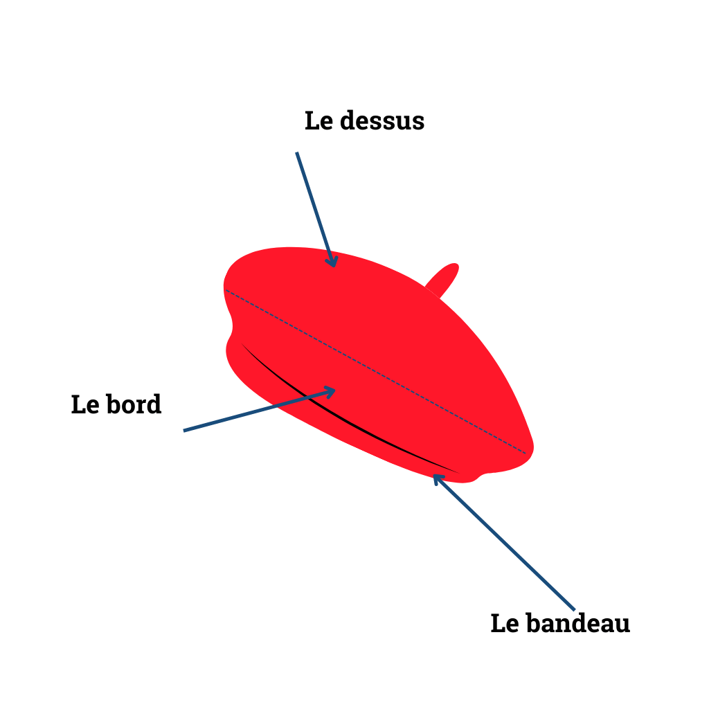 Regardez l’image, nous avons le dessus, le bord du béret et le bandeau. Le bandeau est une rectangle de tissu droit plié en deux (donc sa largeur est de 5-6 cm), la longueur est égale au tour de la tête plus la marge de couture.