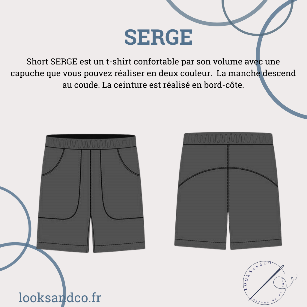 Short SERGE est un short est un modèle super confortable. La coupe est droite, avec l’aisance moyenne. La ceinture et les manchettes sont élastiquées, mais vous pouvez les réaliser en bord-côte. Vous pouvez le porter avec un t-shirt REMY ou t-shirt MAT.
