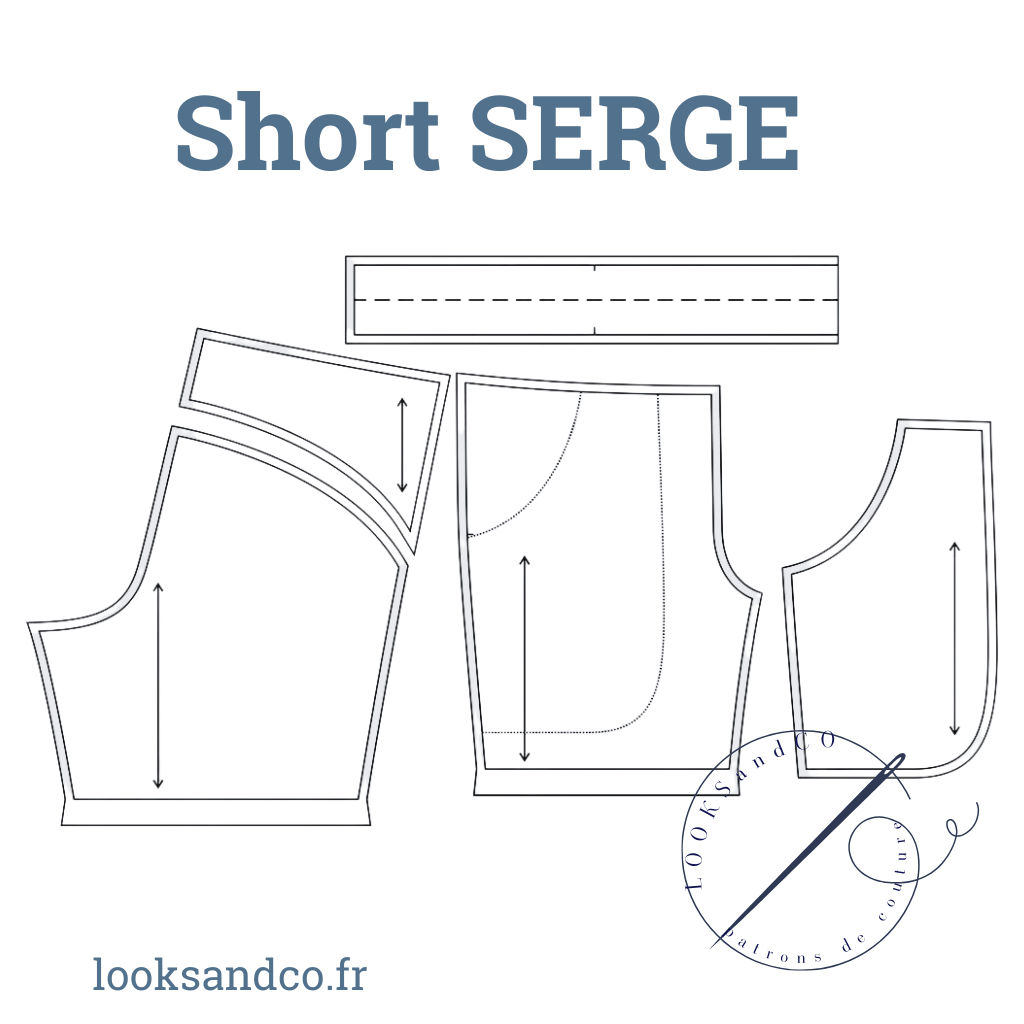 Tissus conseillés:  pour coudre un short SERGE est conseillé les tissus contenant des fibres naturelles (coton, lin, laine, jean), ainsi (viscose) et mixtes (coton + élasthanne, coton + polyester, laine + polyester). Vous pouvez utiliser du jersey mais avec avec 20% d’élasticité.