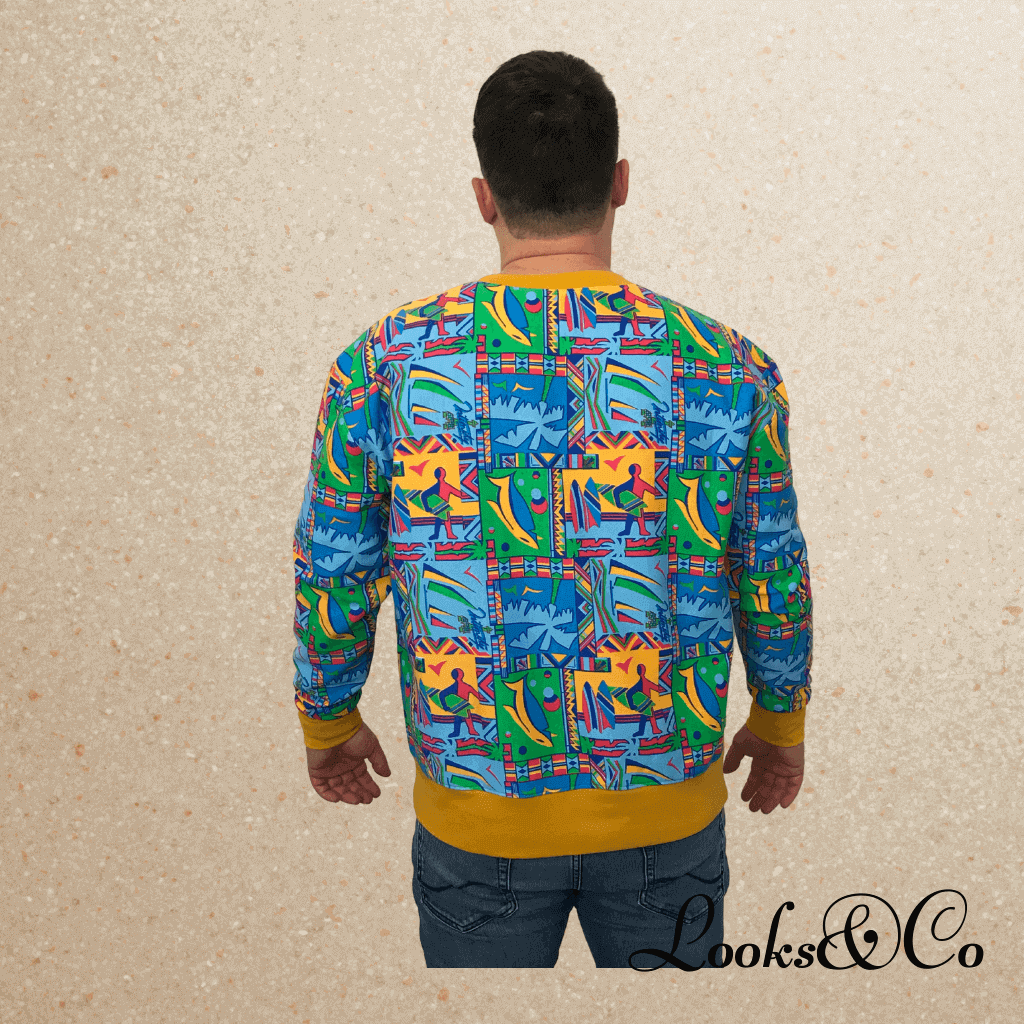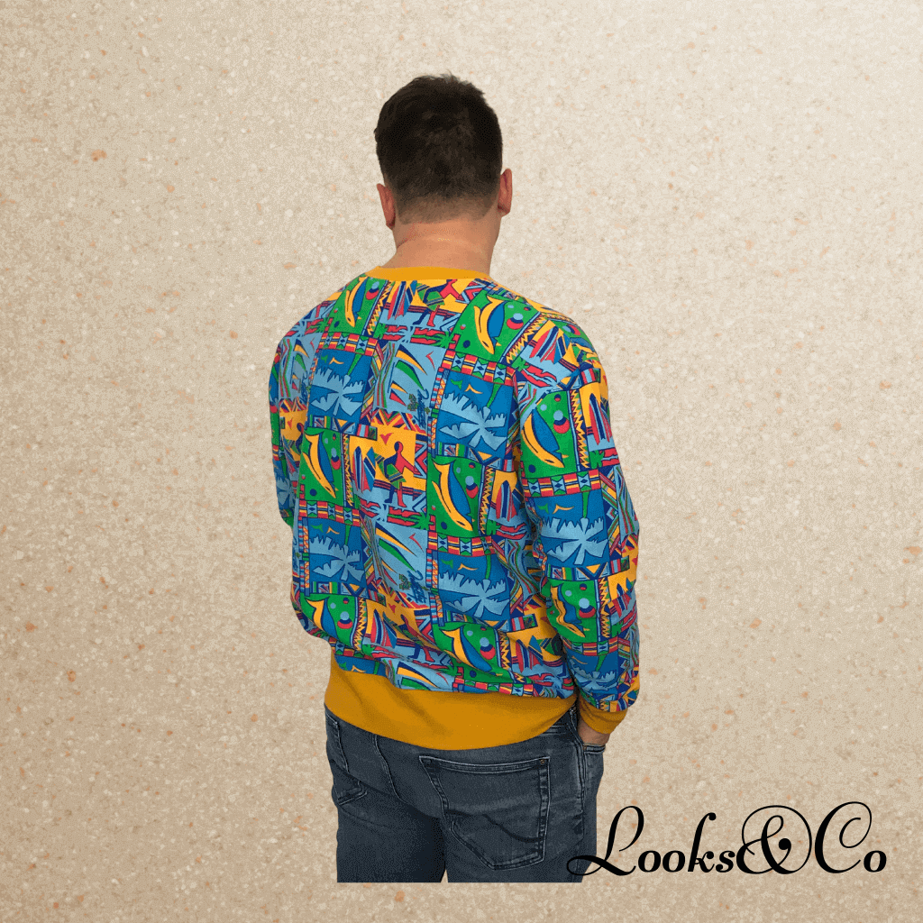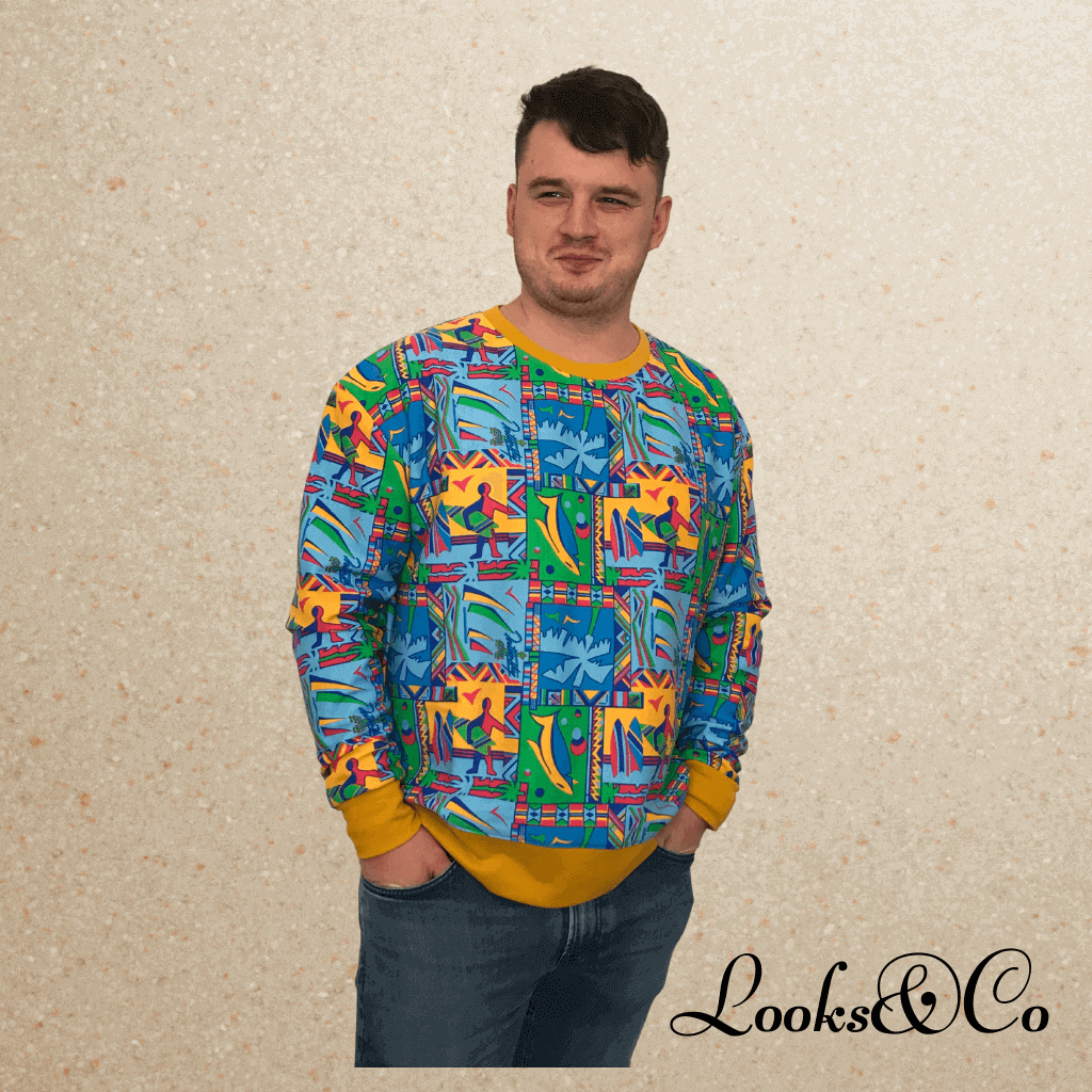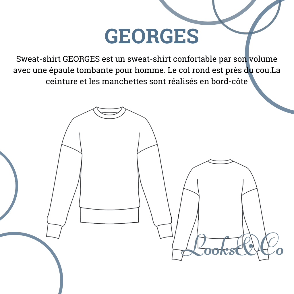 Sweat-shirt GEORGES est un sweat-shirt confortable par son volume avec l’épaule tombante pour homme. Le col rond est près du cou. Il est agréable à porter et facile à réaliser. La ceinture et les manchette sont réaliser en bord-côtes. Vous pouvez le combiner avec le pantalon MARC ou le pantalon SEB .