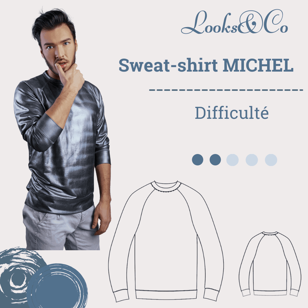 Tissus conseillés: pour coudre un sweat-shirt MICHEL est conseillé tout tissu élastique et du jersey. Il en existe différents comme jersey léger (coton, viscose, lin, laine) avec 40% à 50% d’élasticité. Le plus facile à coudre c’est du jersey coton. Pour les t-shirts légers, optez pour 30 à 150 g/m². Pour les t-shirts moyens choisissez de 150 à 350 g/m², et enfin, pour les t-shirts plus lourds, prenez 350+ g/m².