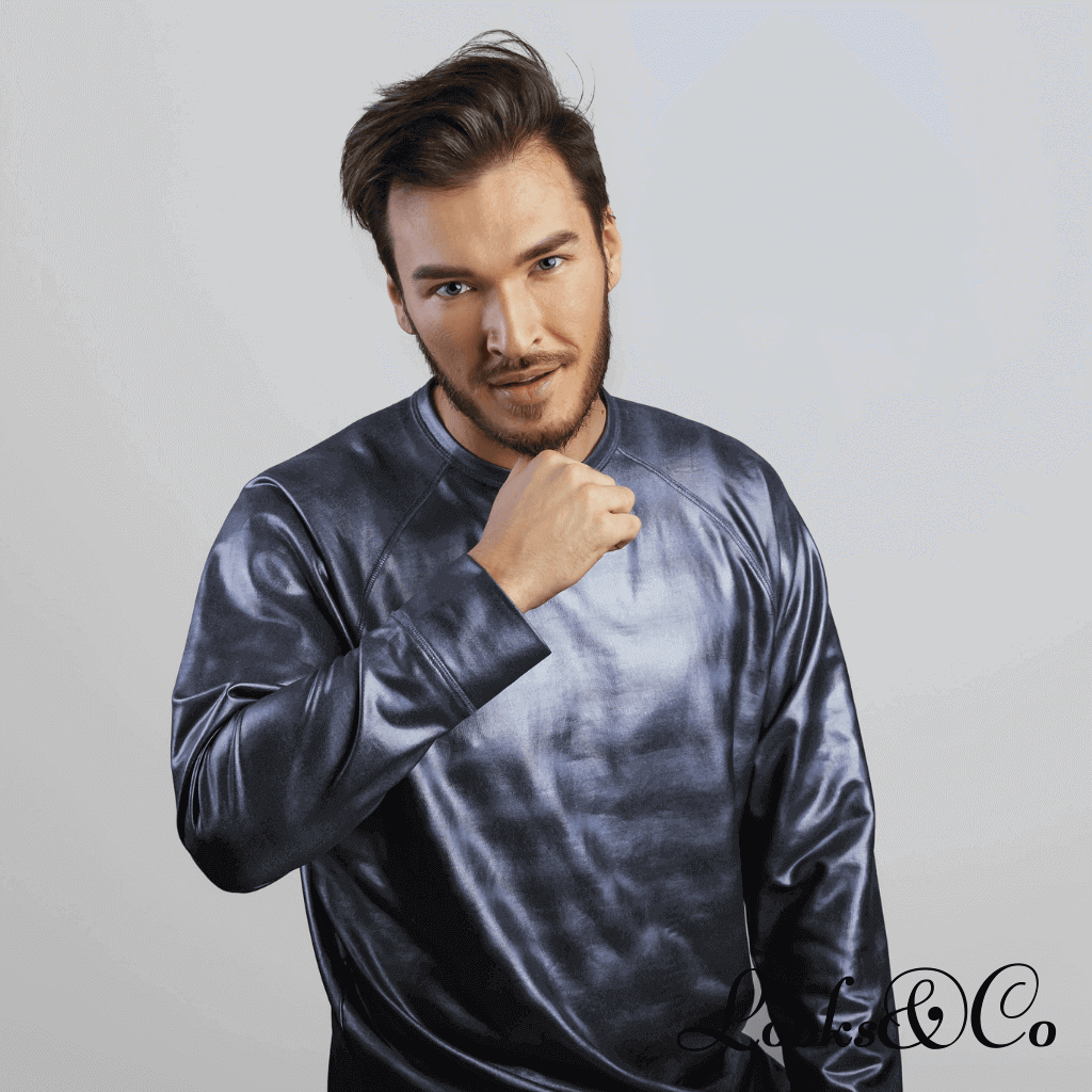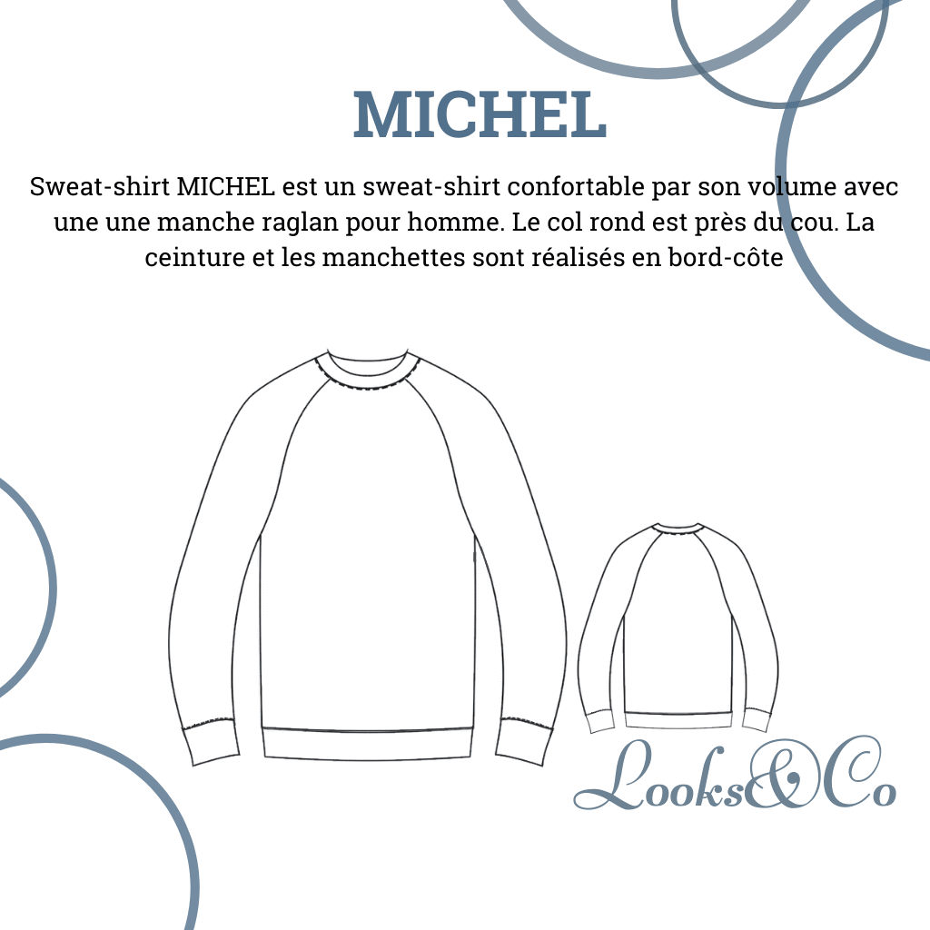 Sweat-shirt MICHEL est un sweat-shirt confortable par son volume avec une une manche raglan pour homme. Le col rond est près du cou. La ceinture et les manchettes sont réalisés en bord-côte. Vous pouvez le combiner avec un pantalon Marc ou pantalon SEB